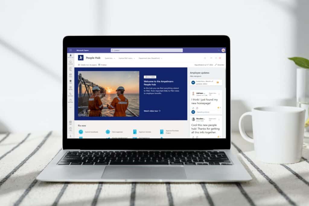 Yammer is een heel fijn communicatieplatform dat kan helpen bij luchtige onderwerpen. Het is ook een leuk idee om de medewerker zich hier te laten voorstellen op de eerste dag! Daarnaast zijn er vaak foto’s en conversaties op te vinden die de organisatiecultuur weergeven. Eventjes niet alleen maar serieuze zaken, want werk is meer dan alleen maar werken. Have fun! Meer weten over Yammer als onderdeel van de People Hub? Lees onze blog “Zo zorg je voor een uniek HR intranet in SharePoint [voorbeelden]“.